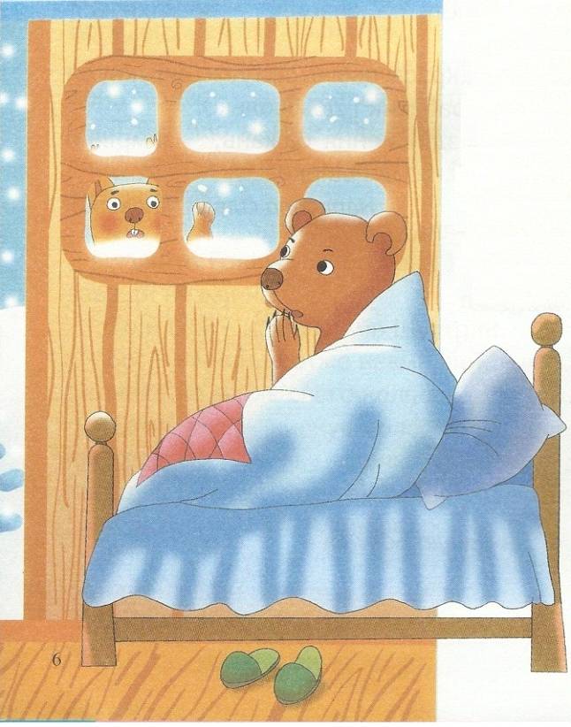 «Поспішає до когось», – подумав Ведмедик і… провалився в сніжну нору. У вікно світив місяць, було тихо і навіть крізь сон цікаво: що ж там назовні, чи не трапилося чого?
