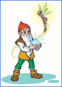 Десь далеко за горами, лісами, в тихій долині, казковій країні жили собі п’ять ґномів: кухар, перукар, кравець, землероб і чоботар. Усі вони були добрими товаришами. Кожен мав свою стареньку затишну хатинку та улюблену справу. Одного теплого весняного дня товариші завітали на обід до кухаря. – Пригощайтеся, гості дорогі! – припрошував радісний хазяїн. – Смак просто неперевершений! – хвалив кулінарний талант господаря ґном-землероб. – Усі ці страви я зготував із соковитих овочів, які ти, друже, невтомно запасав ще з осені! – подякував кухар. За якусь мить із-за столу підвівся кравець і промовив: – Справді, ми щодня допомагаємо та підтримуємо один одного – це дуже добре! Мабуть, єдине, що трішки засмучує, – значна віддаленість наших осель. Пропоную звести спільний будинок. Тоді нам не доведеться розлучатися навіть на день! Присутнім сподобалася така ідея, тому всі відразу взялися до роботи. Спершу вибрали майданчик, а потім підготували необхідні матеріали й почали будувати. Ґноми працювали дуже старанно. Невдовзі житло було майже готове. У лагідних променях вечірнього сонечка виблискував щойно пофарбований дах. Міцні стіни всміхалися великими чистими вікнами. – А чим освітлюватимемо нове помешкання? – запитав кравець. Ґном-чоботар одразу ж запропонував: – Друзі, є прекрасний діамант, сяйво якого може наповнити світлом наш затишний будиночок! Колись я зробив чоботи-скороходи королю сусідньої держави. На знак подяки правитель подарував цей коштовний камінець. Усі були в захваті від такої пропозиції. Та, на жаль, маленьким на зріст чоловічкам було важко прикріпити коштовний камінець до стелі. Скільки зусиль не докладали – все марно. Аж раптом у гості до ґномів завітала давня подруга – фея Лія. – Яка чудова оселя! – захоплено вигукнула вона. Чарівниця вирішила допомогти товаришам. Змахнувши в повітря маленькими блискучими крильцями, вона приладнала діамант до стелі. Камінець весело засяяв. – Ліє, залишайся назавжди з нами! – люб’язно запросили друзі. – Із радістю, – погодилася фея. Відтоді п’ять гномів і чарівниця вже ніколи не розлучалися...