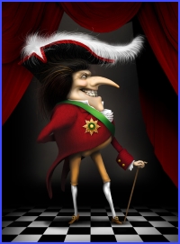 – Його вельможність, – тихо відповів камердинер на вухо візникові, – його вельможність прибули-таки вчора додому пізно ввечері, лягли спати й тепер спочивають. Але… о мій друже, як прибули! Я вам усе розповім, тільки тримайте язика на припоні, бо я пропав, коли його вельможність довідаються, що то я був на темних сходах. Тоді кінець моїй службі, бо його вельможність хоч і маленької статури, проте вдачі надзвичайно запальної, легко гніваються і в гніві самі себе не пам'ятають. Ось хоч би вчора нікчемну мишу, що насмілилась перебігти спальнею його вельможності, геть покололи шпагою. То слухайте! Смерком уже накинув я свого плащика й хотів був тихесенько гайнути в шинок пограти трішки в кості, аж раптом на сходах щось лізе мені назустріч, хропе, сопе і в темряві шмиг у мене поміж ногами, падає на підлогу, підводиться, нявчить по-котячому, а потім рохкає – о боже, дорогий приятелю, тільки не розпускайте язика, а то я пропав, підійдіть-но трохи ближе, ну от, рохкає, як його вельможність мають звичку рохкати, коли кухар пересмажить печеню або коли їм не поведеться в державних справах.