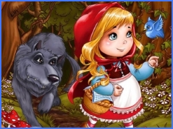 Жила собі на світі славна дівчинка. І така вже була вона мила, що всі її любили, хто на неї тільки гляне. А найдужче любила її бабуся – вже, бувало, й не знала, що дитині дати. От якось подарувала їй бабуся червону оксамитову шапочку. Та шапочка була так дівчинці до лиця, що іншої вона й носити не хотіла. Через те й прозвали дівчинку Червона Шапочка. Одного разу мати каже до неї: