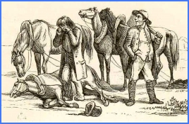 Під столом, коло його ніг, лежав мішок із шкірою коняки, яку він ніс –у місто продавати. Каша йому була не до смаку, от він і наступив ногою на цей мішок, а суха шкура голосно зарипіла.
