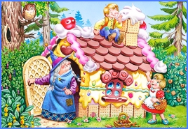 – Отут ми підживимося, – сказав Гензель, – матимемо добрий обідець. Я з'їм шматочок з даху, а ти, Гретель, берися за вікно, воно солодке.