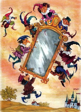 Усі, хто відвідував школу чорта,– а в нього була своя, чортівська школа,– розповідали скрізь про дзеркало, як про якесь чудо. «Лише тепер можна побачити,– казали вони,– якими є насправді весь світ і всі люди».
