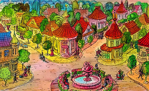 В одному місті (якому, цього я вам не скажу, все одно ви його ніде не знайдете) були вулиці з дивовижними назвами. Була там, наприклад, одна вулиця Канаркова, а інша Мигдальна. І ще була вулиця Картата, і навіть вулиця Польової миші. Але та історія, про яку я зараз розповім, сталася зовсім не на цих вулицях, а на вулиці Зачарованої троянди!