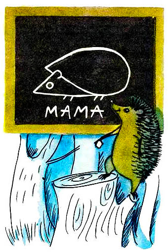 Одного разу на перерві звірята пішли гуляти, а їжачок узяв крейду і намалював на дошці портрет своєї мами. І підписав великими літерами "МАМА".