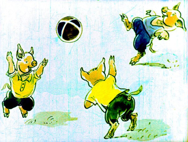 Жили колись троє поросят. Як їх звали? Напевно, ви знаєте, як. Звичайно, Ніф-Ніф, Нуф-Нуф і Наф-Наф. Отже, жили вони собі, весело жили, грали у футбол.