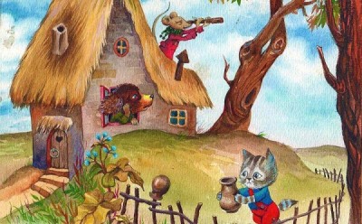У тій хатинці жили собі кошеня, мишка і цуценя.