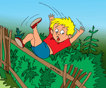 Хлопчик намагався перелізти через Паркан. Він пітнів, але уперто дерся вгору. Паркан крекотів, хитався й наполегливо пропонував маленькому пустуну пошукати собі іншу справу.