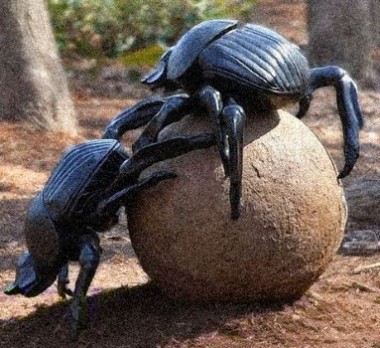 Здебільшого вони були чесні й працьовиті. Як тільки скарабей знаходив свіжого кізяка, то одразу брався до роботи. Ліпив з нього велику кулю, котив її в затишну місцинку, закопував і вже тоді спокійно обідав.
