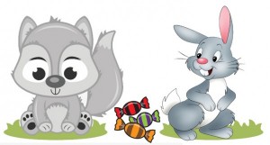 – О, полунична карамелька! Це ж моя улюблена цукерка! — мовив зайчик смакуючи смаколиком — Я б з десяток таких з'їв!