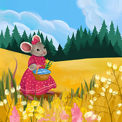 Вдень Мишка була зайнята хатніми справами, а щовечора вибігала зі своєї затишної домівки й поспішала до хатинки, аби послухати вечірню казку, яку бабуся розповідала своїй онучці.