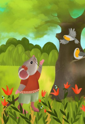 Щаслива Лисичка взяла пакуночок, гарненько подякувала Дівчинці й побігла до своєї хатинки – подарунки друзям готувати.