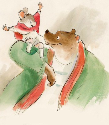 – Ще й як може! – відповіла Мишка. – Ось, сьогодні зранку я вже трьом звірятам допомогла. Білочці горішок дістала, який за пеньочок закотився. Їжачкові яблучка допомогла в комору носити. А потім, біжучи повз Лисиччину нірку, почула, що та гірко плаче. Забігла до неї й питаю: «Чого плачеш, Лисичко?», а вона каже: «Ой, Мишко! Розірвалося моє чудове намисто й намистинки геть розгубилися! Тому й плачу!» То я швиденько всі ті намистинки повишукувала, нанизала на ниточку. І Лисичка тепер не плаче, а вже сміється! А ти, що сьогодні зробив своїми міцними, кремезними лапами?