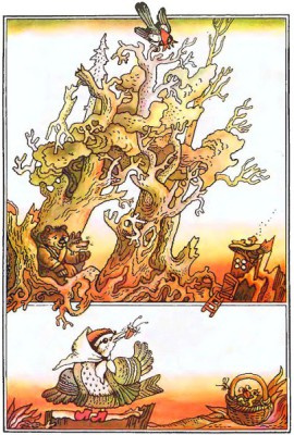 Що було робити? Полетів Королик до Медведевої гаври, сів на гілляці над його головою та й говорить: