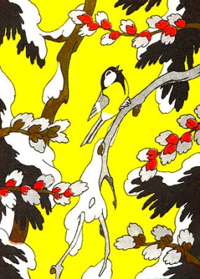 Рано-вранці Синичка прокинулась на гілці високого ясеня. Подивилась на снігові кучугури, на заячі сліди біля старого пенька. І раптом... дзвінко заспівала.