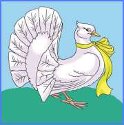 Колись давно жив бідний музикант Тохей. Нічого хлопець не мав, окрім старенької хатини та чарівної сопілки. . Щовечора награвав такі чудові мелодії, що їх, затамувавши подих, слухав увесь світ. Одного дня під вербою парубок виконував чудову пісню. Аж ось прилетіла біла голубка, сіла на плече й почала тихенько воркотіти. Здивувався юнак, дивиться на пернату красуню й боїться навіть поворухнутися. Потім виніс скибочку хліба, аби пригостити: – Їж, маленька, мабуть, здалеку прилетіла. Позбирала пташка крихти й полетіла. А рано-вранці до оселі Тохея підійшла неймовірно вродлива дівчина. – Я – сирота. Прийми до себе, допомагатиму по господарству. – Не солодко житиметься в мене, – каже музикант, – адже в оселі самі злидні. – Не хвилюйся, – всміхнулася дівчина. Зайшла красуня до хати, поприбирала, наготувала вечерю, а потім дістала шовкові нитки й полотно та почала вишивати картину. За кілька днів віддала хлопцеві роботу й каже: – Віднеси до королівського палацу. Як сподобається володарю – придбає, і матимемо за що жити. Приніс Тохей рукоділля до правителя. – Хто створив таку красу? – вражено поцікавився король. – Моя служниця, – відповів парубок. Позаздрив багач юнакові, забажавши переманити дівчину. Отож дав жменю золота й вигадав нове завдання: – Коли служниця така майстриня, хай сплете із соломи золотий килим. А як не впорається з роботою, заберу в палац. Зажурився бідолашний, іде додому й мало не плаче. – Що трапилося? – цікавиться красуня. Розповів усе музикант. – Не журися, – каже дівчина, – лягай спати, а завтра віднесеш королю золотий килим. Здивувався хлопець, приніс мішок соломи, й узялася майстриня до роботи. Дивиться бідняк і очам не вірить... Солома перетворюється в руках красуні на золоті нитки. Наступного дня килим був готовий. І юнак поніс дивовижне рукоділля королю. Насупився правитель, побачивши казкову красу: – Хай тепер змайструє такий барабан, який би сам грав. – Хіба ж це можливо?! – сплеснув у долоні бідняк. – Хочу, щоб було можливо! – вередливо пробубонів багач. Іде додому Тохей сумний-сумний. – Що загадав король? – усміхається красуня. – Змайструвати барабан, який би сам грав. – Це неважко! – засміялася дівчина. – Принеси мені тільки десяток бджіл із вулика. Парубок виконав прохання красуні. І дівчина змайструвала інструмент, напустивши туди комах. Приніс наступного дня Тохей барабан і поклав перед володарем: а в інструменті наче весілля справляють – усе там стукає, гуде, шумить… Здивувався король і ще більше насупився: – Гаразд, хай тоді виконає останнє прохання та принесе мені в торбині хуртовину, сніг і мороз. Хочу бути володарем усіх небесних сил. Злякався музикант, іде додому й не знає, що казати бідолашній дівчині. – Не журися, господарю, – каже юнка, – повернися до правителя і скажи, що на таке завдання потрібен тиждень. Прийшов Тохей до володаря й ледве випросив три дні. – Що ж, – каже красуня, – спробую встигнути. Перетворилася на білу голубку й піднялася в небо. Упізнав тоді музикант ту пернату, що прилітала колись до нього послухати пісень. Минув день, другий, третій – немає дівчини-голубки. Зажурився хлопець. Почав хвилюватися за красуню. Аж ось четвертого дня прилетіла білокрила на світанку й тихенько постукала у віконечко. – Прокидайся, парубче, неси королю гостинці, – заворкотіла й дала музиканту три то