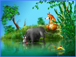 «Краще не вигадаєш,– подумала лисиця,– і другий кошик риби буде мій, а вовкові що-небудь збрешу. Таке вже вигадаю, що й святий вуха розвісить!.