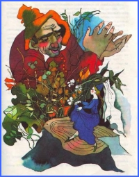 Вона вистрибнула на пеньок і торкнулася своєю чарівною паличкою дошевцевого горба. І враз той горб хтозна-де й дівся!