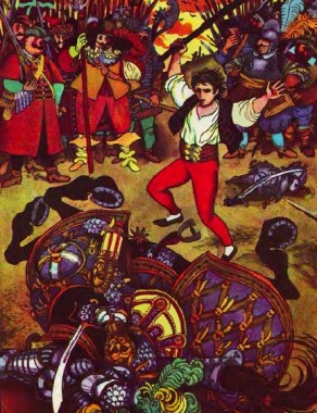 – Буде з нього чоловік хоробрий і терпеливий. Отож хай він стане розбійником! Треба його спорядити як слід і дати все, що треба для цього ремесла.