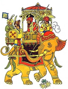 – Ага!То ваш раджа замислив наслати на моє царство смерть! – закричав він. – Вертайтеся назад до того підлого пса й скажіть: через три дні я виступаю проти нього війною! Мої хоробрі вояки візьмуть вашого раджу в полон, а я накажу запрягти нот а плуг і орати ким землю!