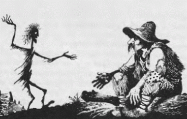 – Я твоя біда! – тоненько запищала потвора. – Дай і мені трохи погризти кістку, бо з голоду пропадаю.