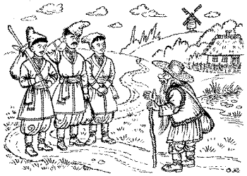 Одного разу троє братів подалися в чужі краї на заробітки. Довго вони йшли, аж поки надибали криницю. Сіли перепочити, коли бачать – дід з ковінькою шкандибає.