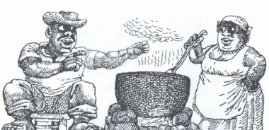 Святкової днини люди розважалися загадками. Один негр прийшов до хати, де складали загадки, попрямував на кухню й почав дивитися в казан, де кипіла якась страва.
