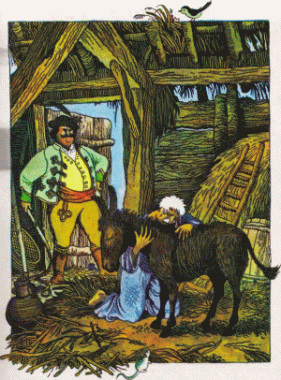 Та як подумав бідняк, що доведеться попрощатися з ослом, серце його мало не розірвалося від жалю. Але нічого не вдієш, доводилося це робити.
