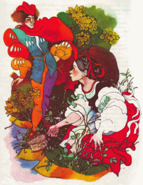 – А чи знаєш ти, люба моя дівчино, що господиня послала тебе на смерть? Поцілуй мене, і я тебе врятую.