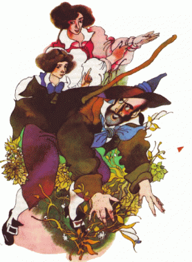 Фея махнула паличкою. І враз велика торба й замашний кийок упали Франческо до ніг! А чарівна фея сказала:
