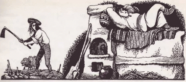 Ледачий зойкав від болю. Ледве виплутався з того мішка і помчав до хати.