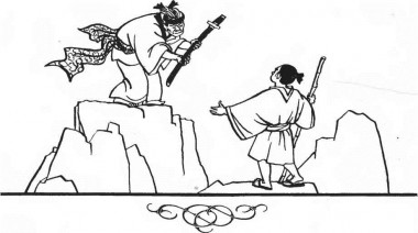 Хлопець подякував, повісив меча на пасок і рушив дорогою, біля якої бамбук шелестів: «Шелесь-шелесь... іди».