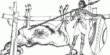 А мудрий мисливець розрізав тушу і роздав м’ясо всім жителям свого села.