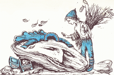 Назбирав хлопчина повний кошик дров і подався додому. Коли це на галявині він раптом побачив білий, з’їдений негодою камінь.
