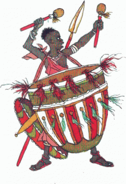 У таборі Болоби велетенський барабан відбивав бойовий ритм. Крізь голосний спів ворогів час від часу долинало одноманітне деренчання їхньої музики.