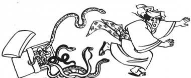 – Ой!..– закричала баба, коли, відкривши скриньку, побачила: з неї повзуть вужі, гадюки, сколопендри.