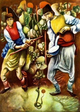 Один чоловік мав гарний виноградник. Біля виноградника лежала купа каміння, де жила велика змія. Якось виноградар побачив змію і надумав зробити їй добро. Узяв кухоль свіжого молока, приніс, поставив біля каміння і став оддалік – хотів побачити, що буде. Змія вилізла, випила молоко і впустила в кухоль один золотий. Виноградар узяв кухоль із золотим і пішов собі. Відтоді щоранку носив він змії молоко і забирав по одному золотому. Так дружили вони багато років.