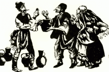 – Коли я розбагатів, набралося в мене дев’ять повних горщиків золота й десять горщиків, насипаних до половини,– розпочав Хитрий Петр.– «Що робити з цим добром?» – подумав я і став будувати чешми, мости, позичати гроші, роздавати їх просто так і під проценти, одне слово, робив комерцію. Були в мене сусіди – чоловік і жінка. Такі гарні люди, скромні, тихі, працьовиті. Одружили дітей і жили самі, радіючи світу ясному. От я і надумав вивірити, що за люди мої сусіди. Покликав їх до себе й дав їм горщика, де було до половіти насипано золота. Так і так, кажу, в мене цього добра багато, а у вас немає, то візьміть цей горщик, аби і у вас дома дзвеніло золото.