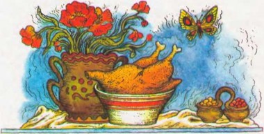 – Пан – голова сім’ї, панові й виділимо голову. Пані – перша після пана особа - їй нехай шийка буде. Синки підростуть трохи та й підуть топтати батьківські доріжки – їм нехай будуть ніжки. А дочкам – по крилу, щоб хутчій заміж з дому вилітали.