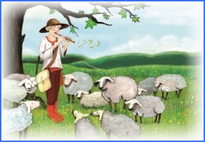 Ходять вівці по галявині, щипають траву. А Іванко за ними наглядає. Як побачить, що якась вівця хоче до лісу забігти, враз на дудочці заграє. Всі вівці до нього й біжать.